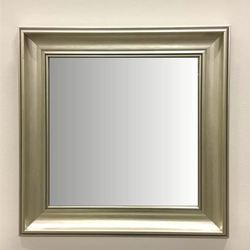 Hopeakehyksinen peili, jossa harmaanbeige raita kolmessa kohdassa.