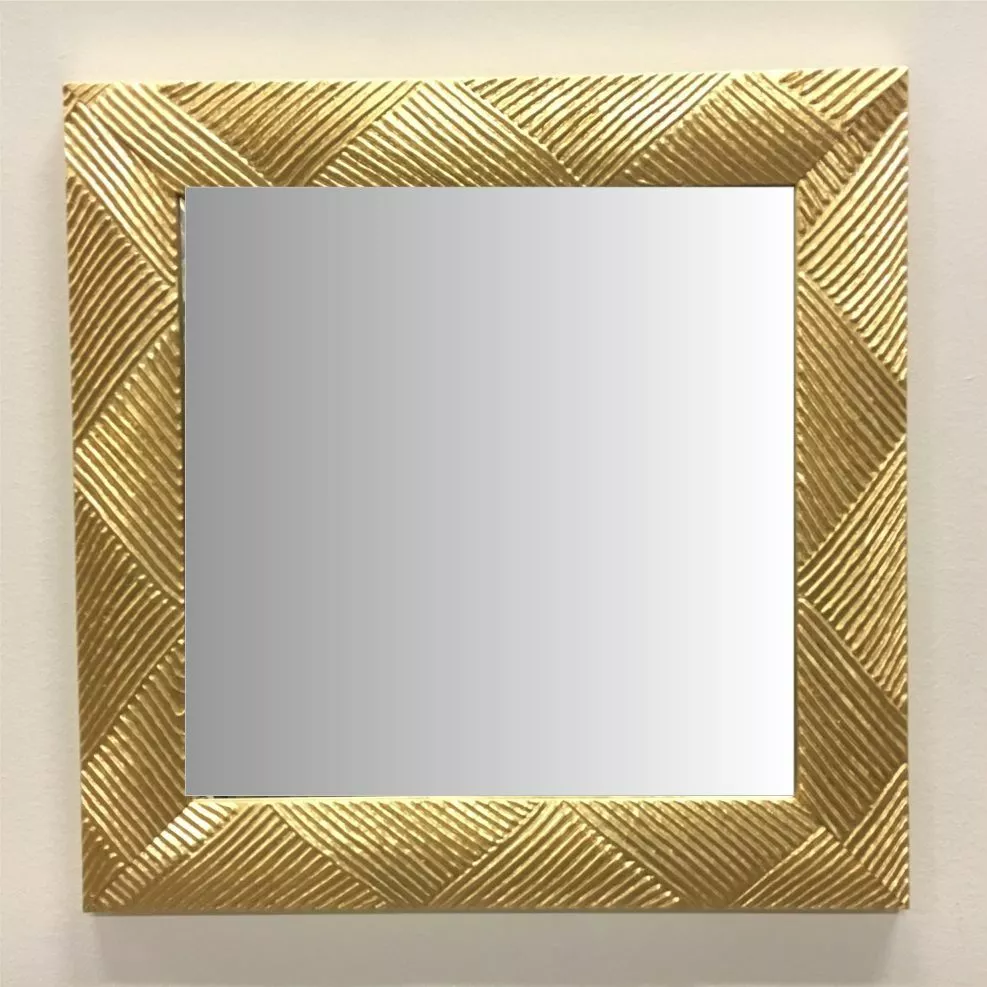 Tyylikäs kultakehyksinen peili, sirolla mutta näyttävällä kehyksellä.