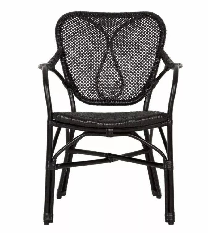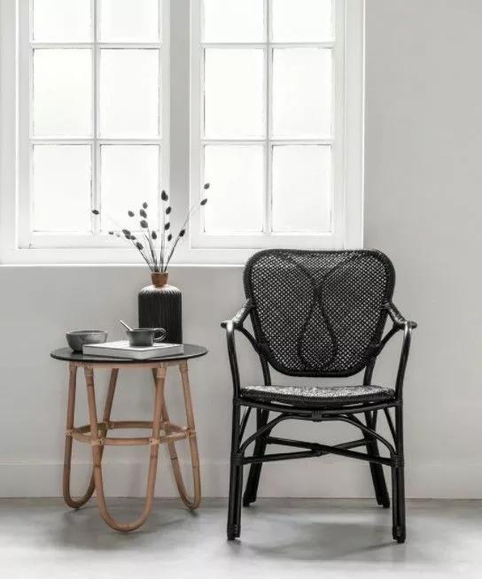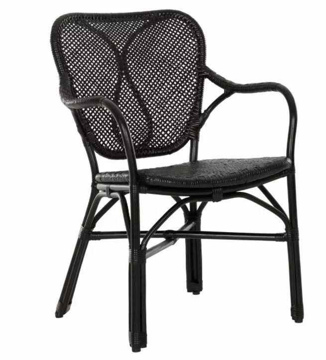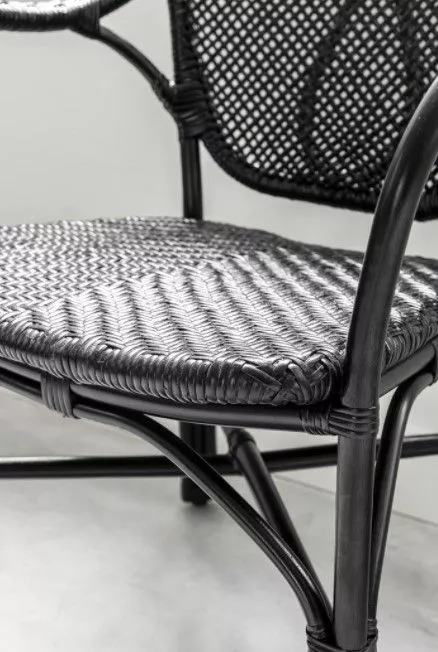 Ruokasalin tuoli Torino on valmistettu rottinkista ja siinä on käsinojat.