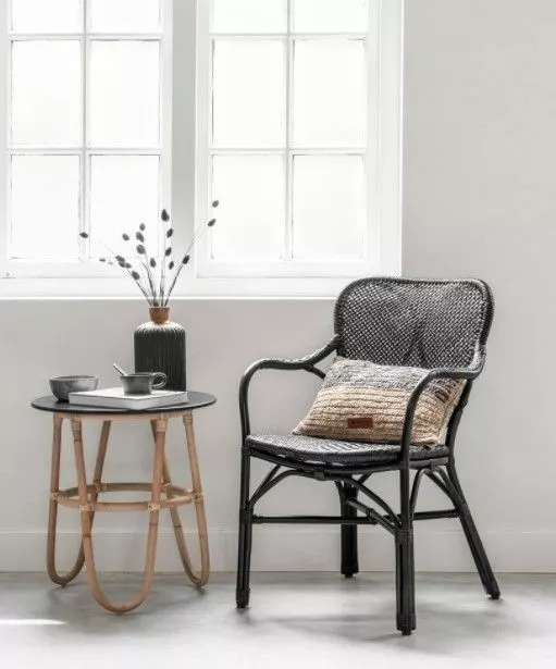 Musta rottinkituoli, koko 86x61x63 cm , luonnonrottinkia